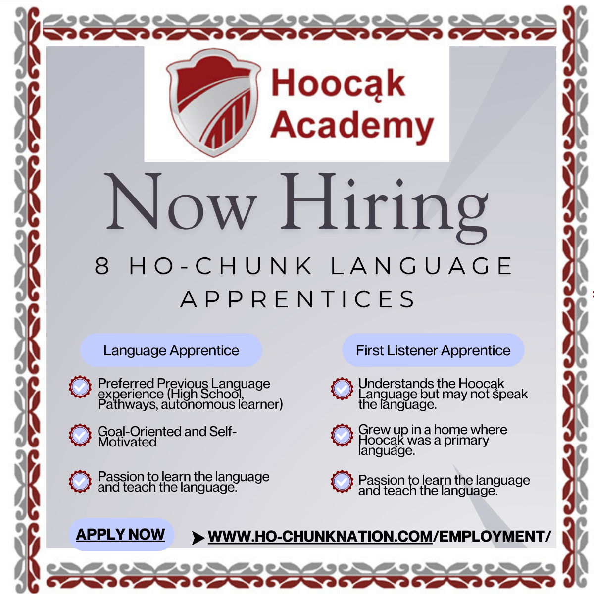 We are hiring! Applications close May 7, 2026 Click Here to Apply Online Pathways Program Info Woorak Wednesday: Easter Colors (updated 3/26/2026) https://www.facebook.com/share/v/1D2XbesRLP Use the QR Code below for a Wašjįk Woorak (Bunny Story) (Updated 4/1/2026) Weekly Video LEARN MORE Classes Location & Staff Events Resources